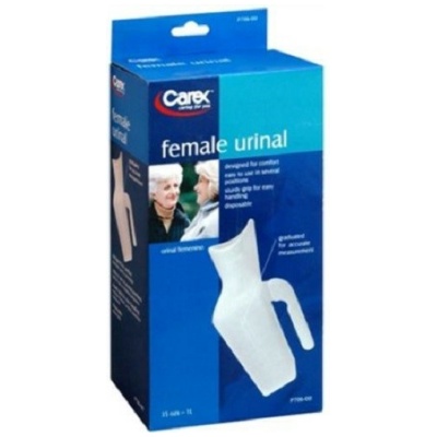 The Carex female urination device is designed to be lightweight, durable, and easy to clean. This portable urinal can be used in several positions and features a sturdy grip for easy handling and to prevent spills. The women’s urinal has graduation marks to measure output.